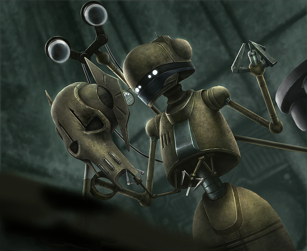 EV-A4-D was sarcastic and sadistic, and he appeared to take as much joy in the potential defeat of Jedi and clone troopers as Grievous did.